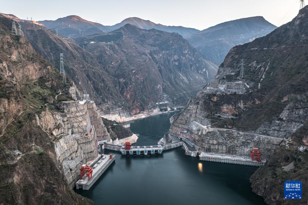 這是12月19日拍攝的白鶴灘水電站(無人機(jī)照片)。