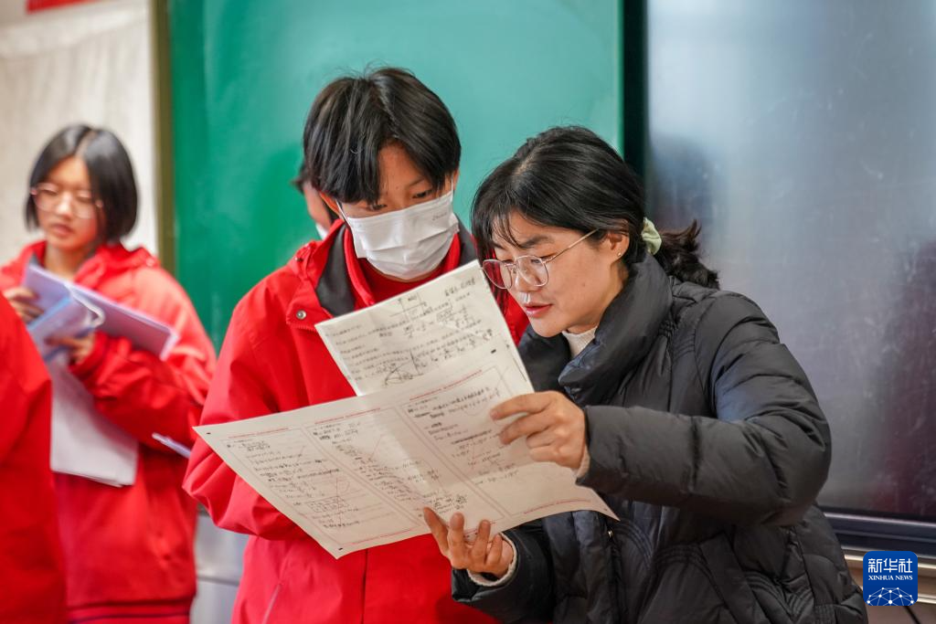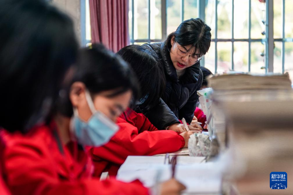 12月13日,華坪女高第一屆畢業(yè)生、華坪女高數(shù)學(xué)教師周云麗在為學(xué)生講解題目。