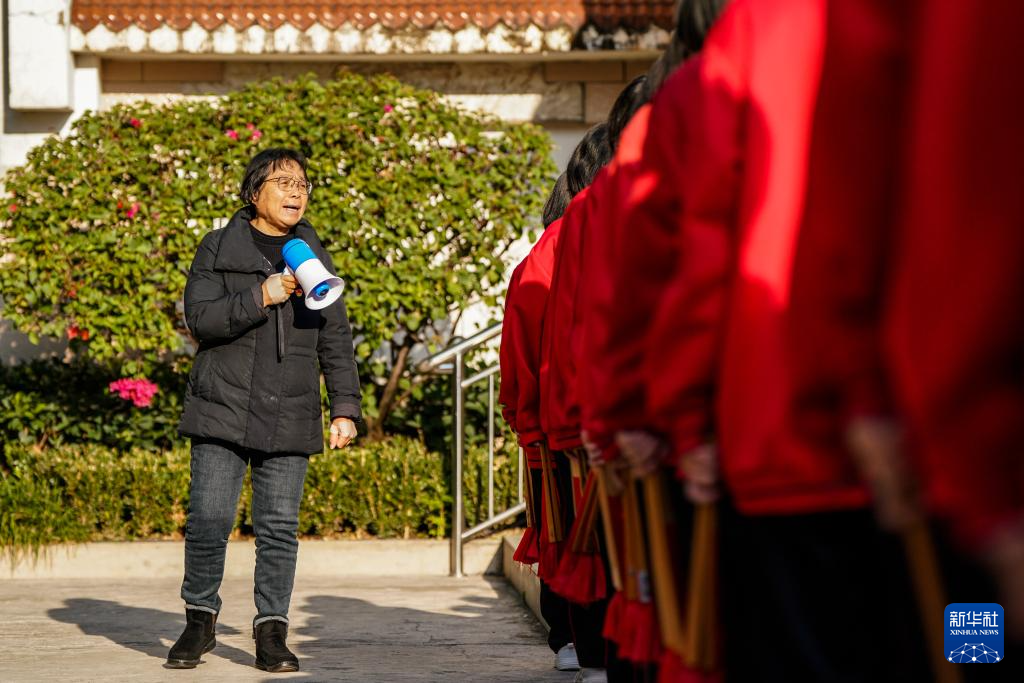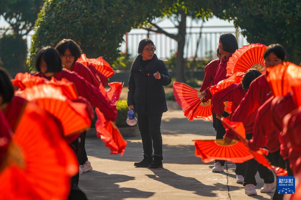 12月13日,張桂梅在華坪女高組織學(xué)生們做早操。