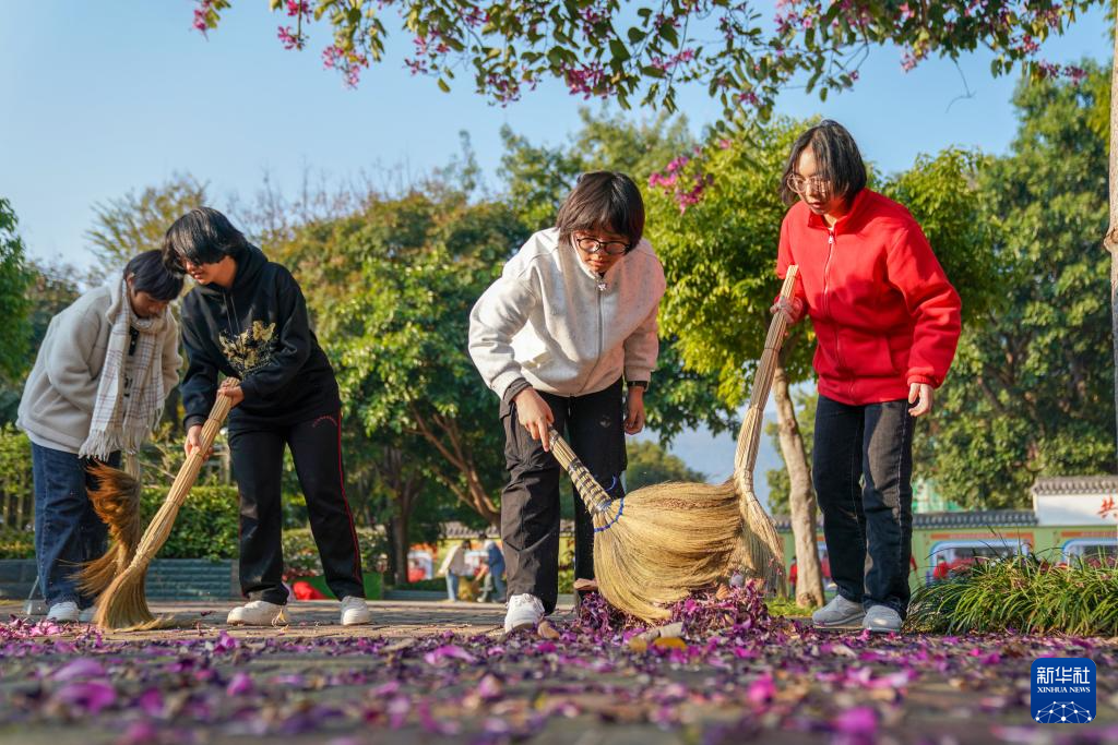 12月14日,華坪女高學(xué)生在校園內(nèi)打掃衛(wèi)生。