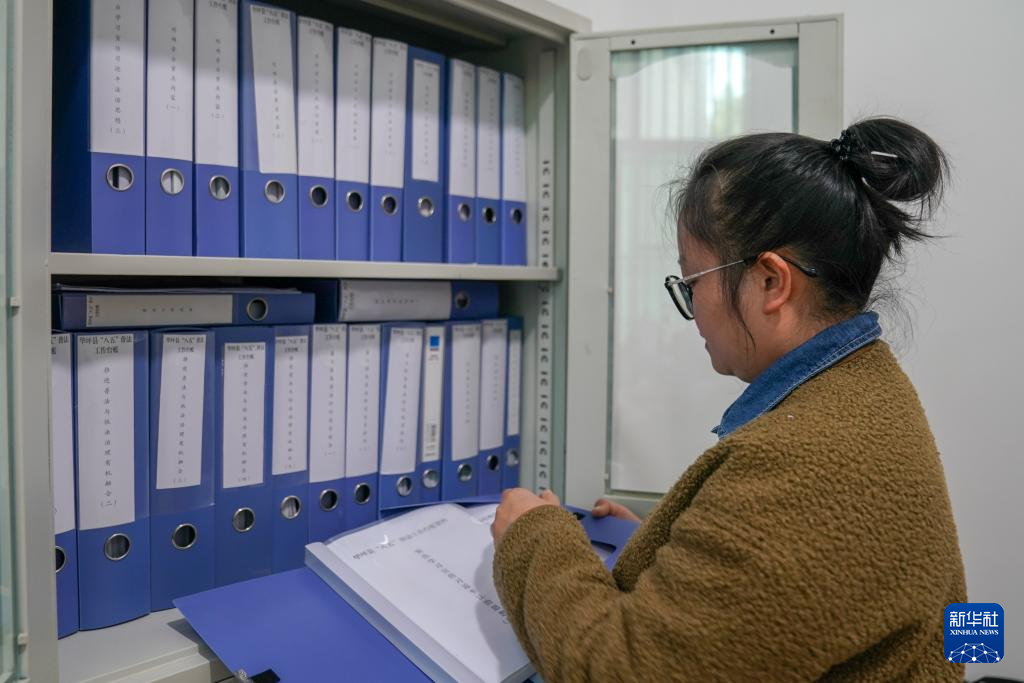 12月13日,華坪縣司法局工作人員李佳宇在辦公室整理資料。